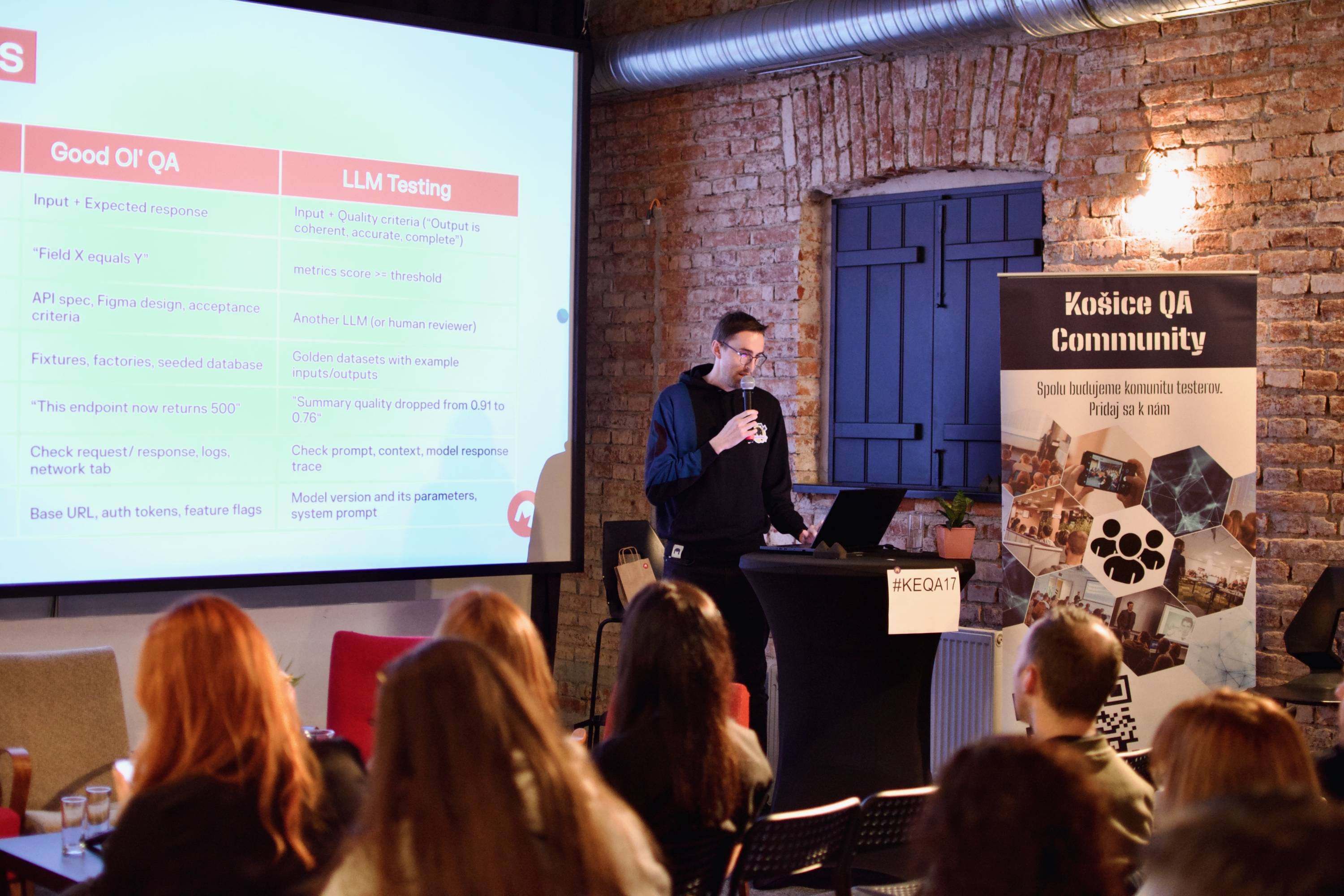 Večer sme otvorili témou, ktorá dnes rezonuje v každom inovatívnom tíme – umelou inteligenciou. Martin Čajka z Moxymind nás previedol svetom evaluácie AI riešení. Ukázal nám, že postaviť AI agenta je len začiatok. Skutočnou výzvou je vedieť objektívne zmerať, či naozaj funguje. Martin nám ukázal, ako vieme nahradiť subjektívne pocity tvrdými dátami a zabezpečiť kvalitu výstupov v reálnej praxi. V druhej časti sme prešli od algoritmov k ľuďom. V rámci panelovej diskusie sme nazreli „pod pokrievku“ náborového procesu. Spojili sme pohľady Team lídrov a HR špecialistov, aby sme zistili, ako to celé vyzerá, od zadefinovania otvorenej pozície až po samotný pohovor. Diskutovali sme, ktoré skilly sú dnes na trhu práce „must-have“ a čo presne očakáva líder od svojho nového parťáka v tíme. Bol to večer plný praktických rád, búrania mýtov a networkingu. Ďakujeme všetkým za účasť.